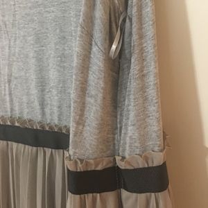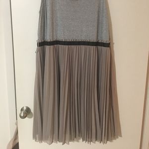 Sleeveless dress with pleated skirt. No stretch black ribbon at waist. Side zip Casual grey tee material for the upper half of the dress. Beige/grey pleated skirt. Lined. Item tag is a UK 22/24 which is a US 18/20. Item consistent with brand size chart. Worn twice. Reasonable offers considered :)