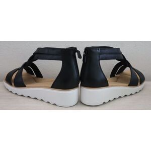 Collection x Clarks Women's Sz 11 M Black Leather Jillian Bright Strappy Wedge Heels