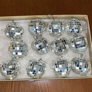 Collection of 12 silver mirrored apple Christmas tree ornaments