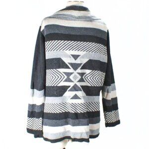 Collections Etc Color Block Open Cardigan Black Gray Off White Stripes Size XL