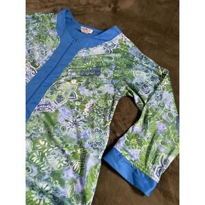 Collections Etc Full Length Robe Housecoat SZ Large Abstract Blue Green pattern
