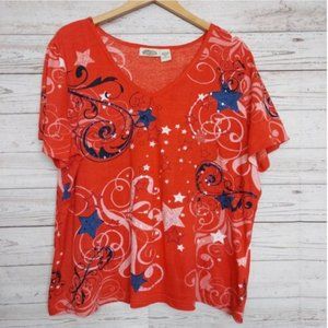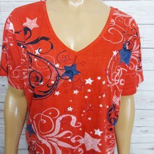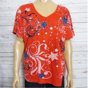 Collections Etc Red V-Neck Patriotic Shirt Size Xl. Pre-loved In Good Condition