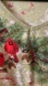 Charming green sweater featuring a cardinal and pine motif with golden and red sequins in the front.