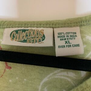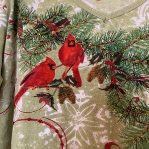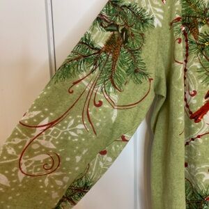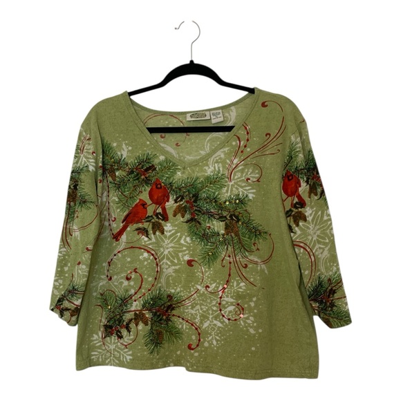 Collections Etc V Neck 3/4 Sleeve Green Blouse with Cardinal Design Size XL