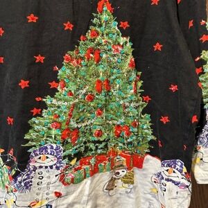 Collections Etc Womens Christmas Tree Snowman Top 3/4 Sleeve XL Holiday