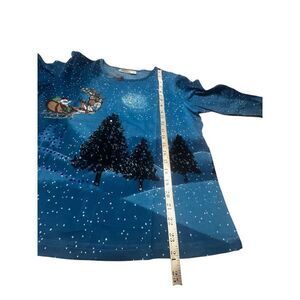 Collections Etc Womens Christmas Shirt Size Large Santa Sleigh Beads 2 Sided NW