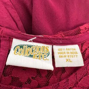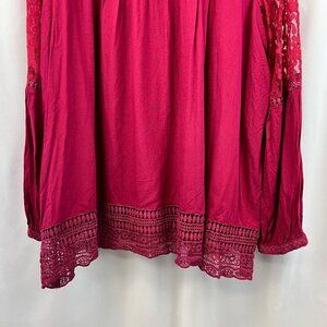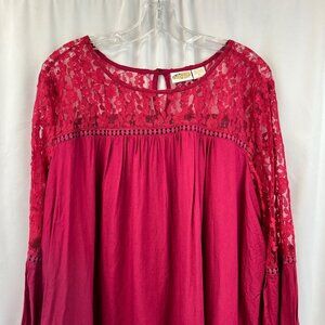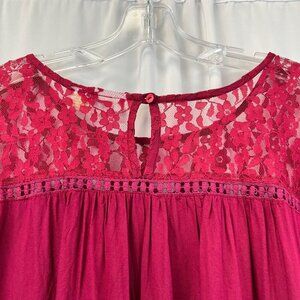 Collections Etc Women’s Lace Pullover Top Raspberry Size XL Keyhole