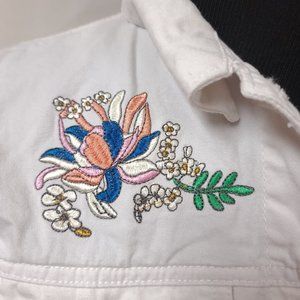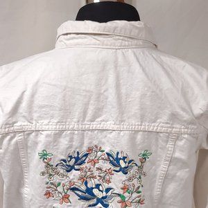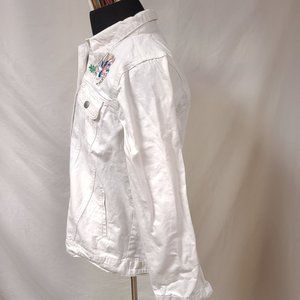 Brand & Description: Cute Collections Etc Womens Large Embroidered Floral Boho Art Deco White Denim Jacket