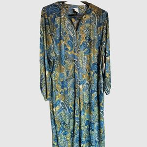 Collections Etc Women's Light Weight Robe Plus Sz XXLG Blue/Avocado Paisley Afghan