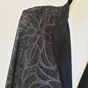 Collections Women's Black Silver Floral Semi Sheer Open Front Cardigan Jacket