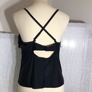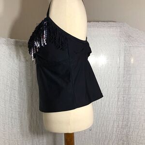 Solid black tankini top with beaded "Fringe" details. Pre-owned in good condition. Please refer to pictures for best description and condition verification.