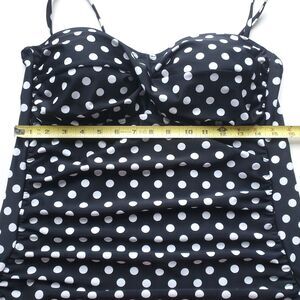 Collections by Catalina Tankini Swim Top Size L 12-14 Bandeau Black Polka Dot