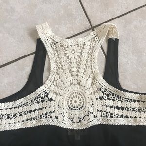 Collective Concept Loosely Knitted Razor Back Tank. Sheer black with pretty knit on the bottom as well as the strap.