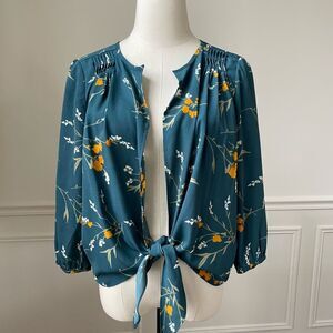 Collective Concept Stitch Fix Open Front Knotted Green Floral Blouse M Petite