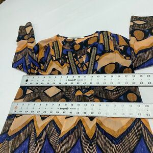 Collective Concepts Beaded Flowy Top Blouse Womens Small Blue Purple Tan Gold