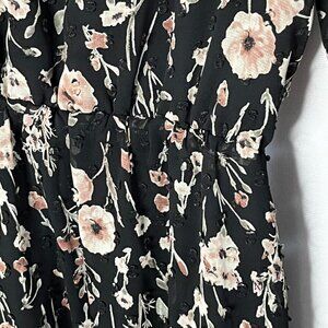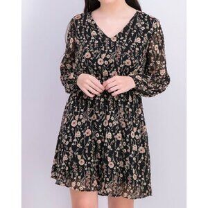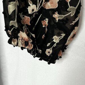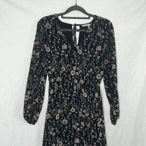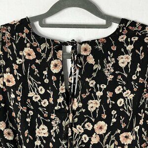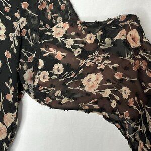 Collective Concepts Black Floral Mini Dress Long Sheer Sleeves Size XS