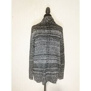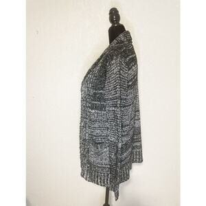 Crafted from high-quality materials, this cardigan boasts a timeless black and silver color combination that adds a subtle shimmer to any outfit. The soft fabric drapes beautifully, providing both comfort and style. The open-front design allows for easy layering and creates a flattering silhouette.
