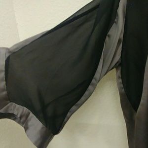 Gently worn. Small Gray Collective Concepts Blouse with Black Mesh Accents... High Low Top. V neckline.. Mesh panels in shoulders & sleeves...Super cute!!!