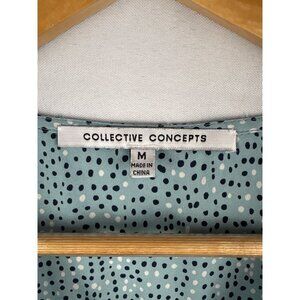 Collective Concepts Blue Polka Dot Ruffle Sleeve Blouse Size M