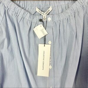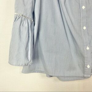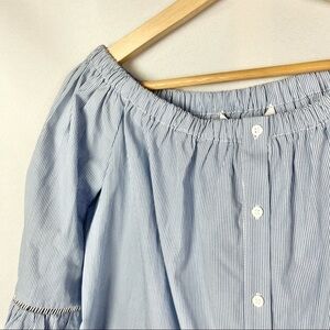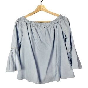 Collective Concepts Blue Stripe Off the Shoulder Long Sleeve Blouse S