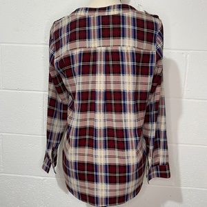 Collective Concepts Button Down Dark Red White Blue Plaid Shirt