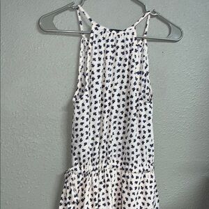 Chic floral tank top by Collective Concepts. Features a cream base with navy and pink floral patterns. Perfect for casual outings.