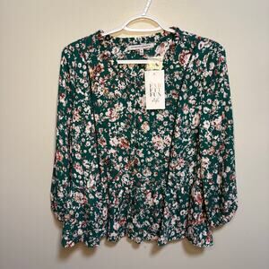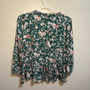 Collective Concepts Green White Sloan Floral Peplum Blouse Fab Fit Fun Medium
