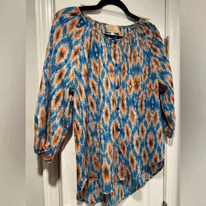 Collective Concepts High Low Button Front Scoop Neck 3/4 Sleeve Blouse Size M