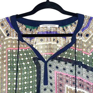 Collective Concepts Multicolor Split Neck Boho Print Blouse Small Women’s