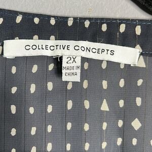 Collective Concepts Navy Blue Sheer Polka Dot Blouse Size 2X