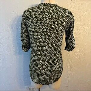 Collective Concepts Navy & Yellow Floral Roll Tab Sleeve Blouse XS