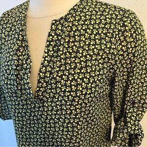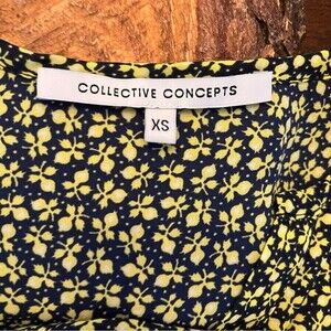 This Collective Concepts Navy & Yellow Floral Roll Tab Sleeve Blouse is in excellent condition.