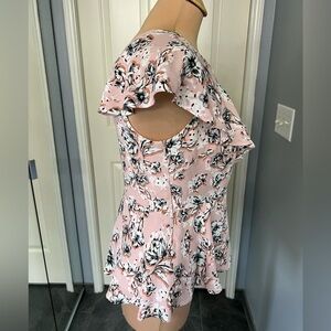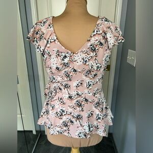 Collective Concepts Pink Floral Faux Wrap Peplum Y2K Cottagecore Top