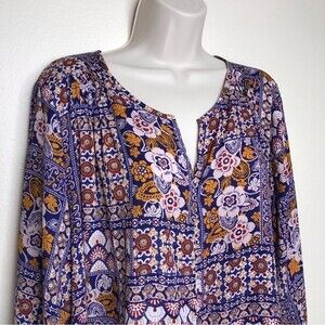 Collective Concepts Print Boho Tie Front Long Sleeve Blouse Womens Size XL