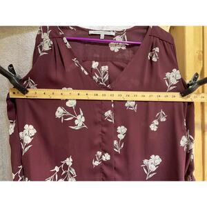 Collective Concepts Sheer Floral Long Sleeve Large Top V-Neck Lightweight