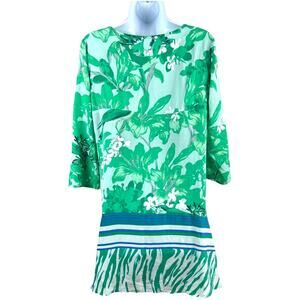 Collective Concepts green blue and white mixed print tunic mini dress. Women's size Medium