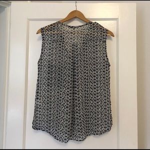 Collective Concepts Navy &a white print top with pocket from Stitch Fix, size small. Sheer and flowy, looks great with a white or black tank underneath.