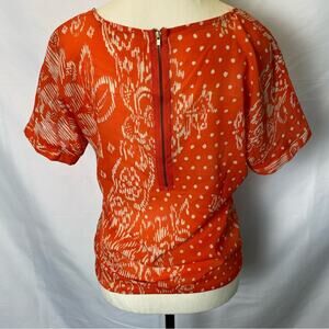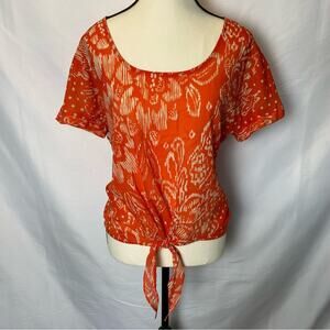 Collective Concepts Tie Front Short Sleeve Blouse Womens Size Small Red Floral
