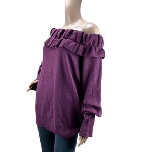 Collective Concepts Women Burgundy Knitted Ruffle Off The Shoulder Sweater Top L