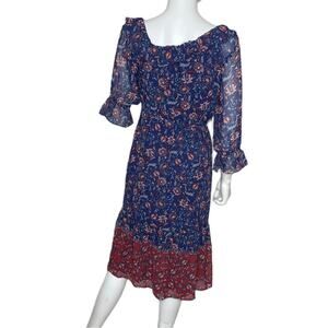 Collective Concepts Women’s Blue Red Multi Floral Off Shoulder Midi Dress Sz XS