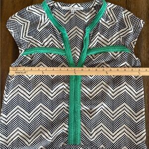 Collective Concepts Women’s Navy and Cream Chevron Top with Green Accents Size M