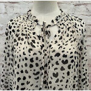 Collective Concepts Womens S Popover Blouse Ivory Cheetah Ruffle Tie Neck Sheer