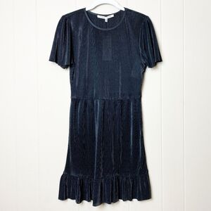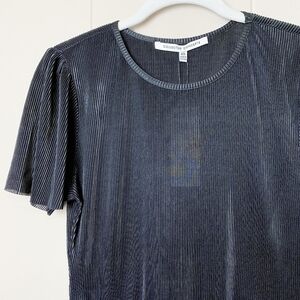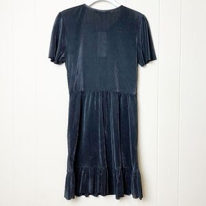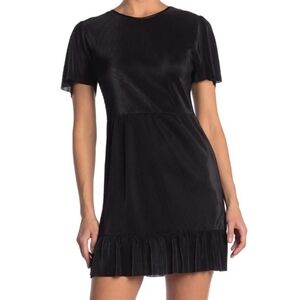 Collective Concepts plisse mini dress NWT new black short sleeve ruffle neutral micro pleat pleated solid minimalist