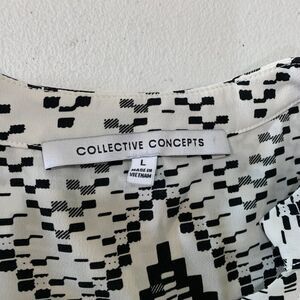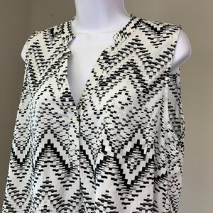 Collective Concepts sz L Blouse Sleeveless Top Black White Lightweight V-neck