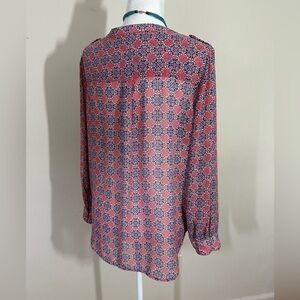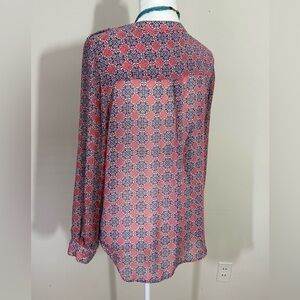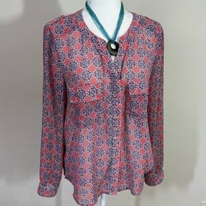 Collective Concepts sz L P top, shirt blouse mini print lightweight long sleeve