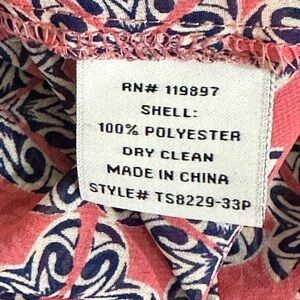 EUC top in a lightweight sheer fabric in coral and black. Long sleeve. Generous length. Two pockets on the front. The sleeves have a button and loop to attach and.fold the sleeves up. Measurements are pit to pit flatfold about 21”. The total length from top to bottom is about 26”. No visible flaws. Any questions please ask and we will answer questions ASAP. P
