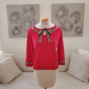 Collective Works Of Berek 2 Embellished Mistletoe Bow 3/4 Sleeve Sweater sz Med