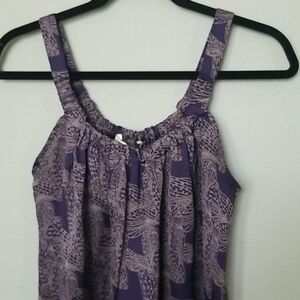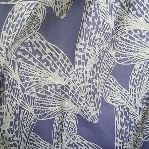 A very silky lightweight mini dress. No stretch to fabric. Has a butterfly wing pattern to it, navy blue background with a grayish silver print. The straps have elastic. Smoke free home. Excellent condition, I dont see any flaws. Boho, hippie, slinky, girly, 90's , 00's, dinner, date, weekend, party, hang out, brunch, witchy, sweet, twee