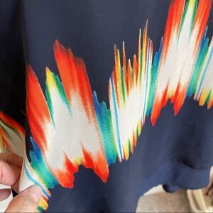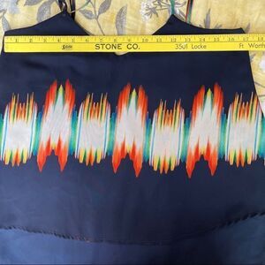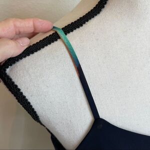 What I Love About It: Navy blue with vivid orange, red and white flame print around middle. Adjustable straps and v-neck styling. Cami is two layers and longer than your average camisole.