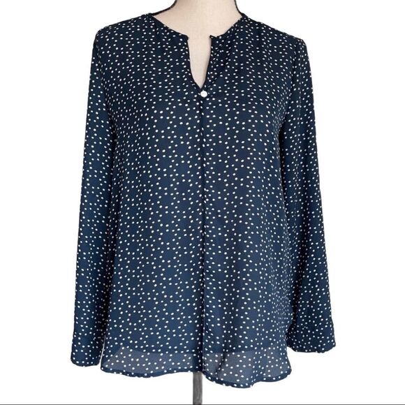Features: Long Sleeves that can be buttoned up. V-neck with decorative button. 100% polyester with chiffon feel.